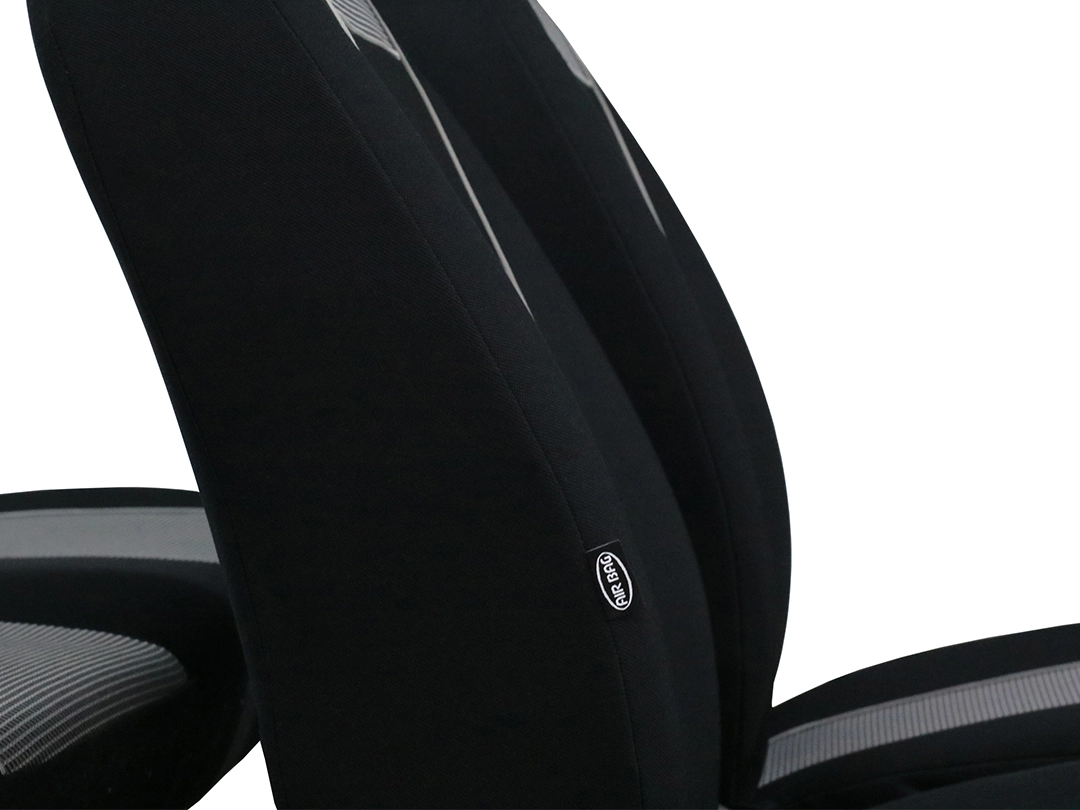Az oldallégzsákok helyén egy speciális, láthatatlan varratot használtunk, amelynek köszönhetően a huzat, amennyiben a légzsákok működésbe lépésére van szükség, nem késlelteti azok reakcióját. Ezt a PIMOT által kiállított B28 biztonsági tanúsítvány is megerősíti.