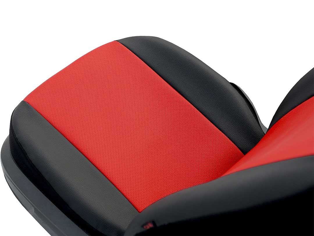 A Performance modellek magas minőségű, perforált ökológiai bőrből készülnek, amely megjelenésében és tapintásában is a valódi bőrt idézi. Ez az anyag nemcsak rendkívül tartós, hanem kiváló légáteresztéssel is rendelkezik, így hosszú távon megőrzi elegáns megjelenését és kényelmét. A perforált felület különösen előnyös ülésfűtéses vagy ülésszellőztetéses járművekben, mivel biztosítja a levegő és a hő szabad áramlását. A huzatok külső felülete erős, fekete textilbőr, míg a belső, hangsúlyos rész prémium szintetikus bőrből készül, amely kellemes tapintású és jól illeszkedik az ülések formájához. A fejtámlák fekete színűek és tartós kárpitszövetből készülnek. A középső panelek többféle színben érhetők el, így a belső tér hangulata könnyedén személyre szabható.