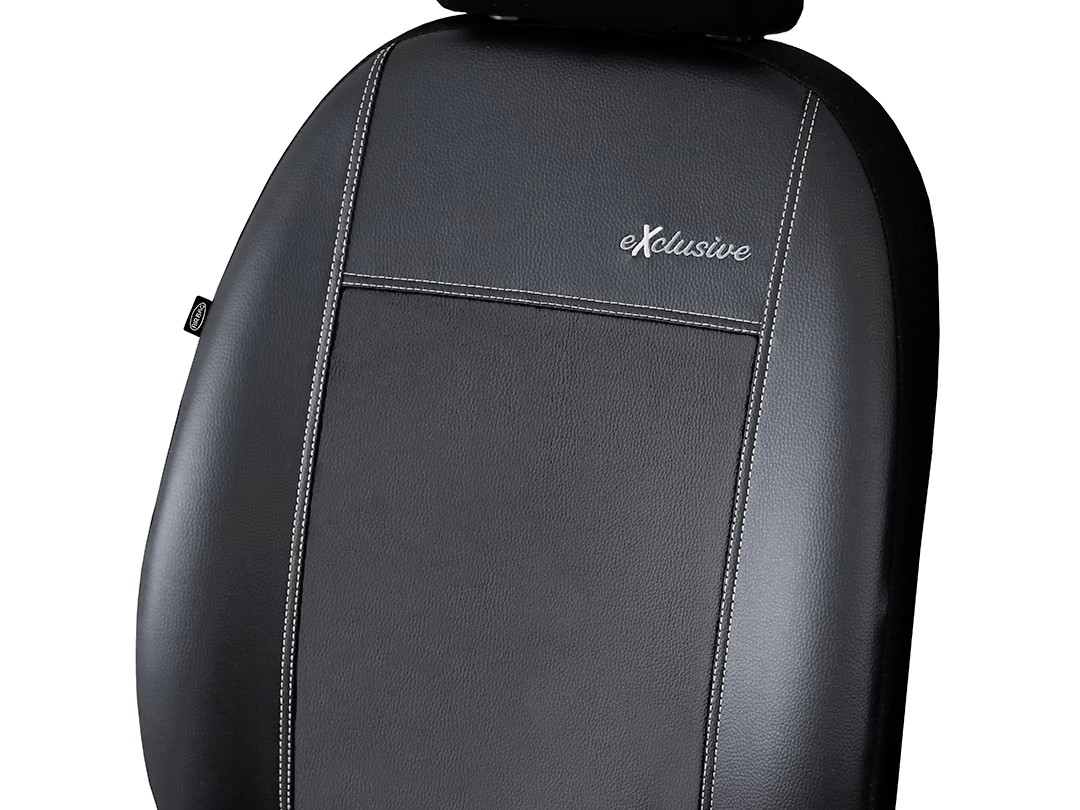 Az Exclusive bőr üléshuzatok esztétikus dupla varrással készülnek, amik amellett, hogy egyedi designt adnak, a időtállóságra is jótékony hatással vannak. Minden huzatot nem hivalkodó Exclusive hímzés díszít. A huzatok anyaga mind a külső, mind a színes belső részén kiváló minőségű textilbőrből (tehát nem valódi bőrből készülnek), amik közül a külső rész fekete színű, a belső rész pedig 7 féle szín közül választható. A fejtámlák színe fekete, anyaga szövet.