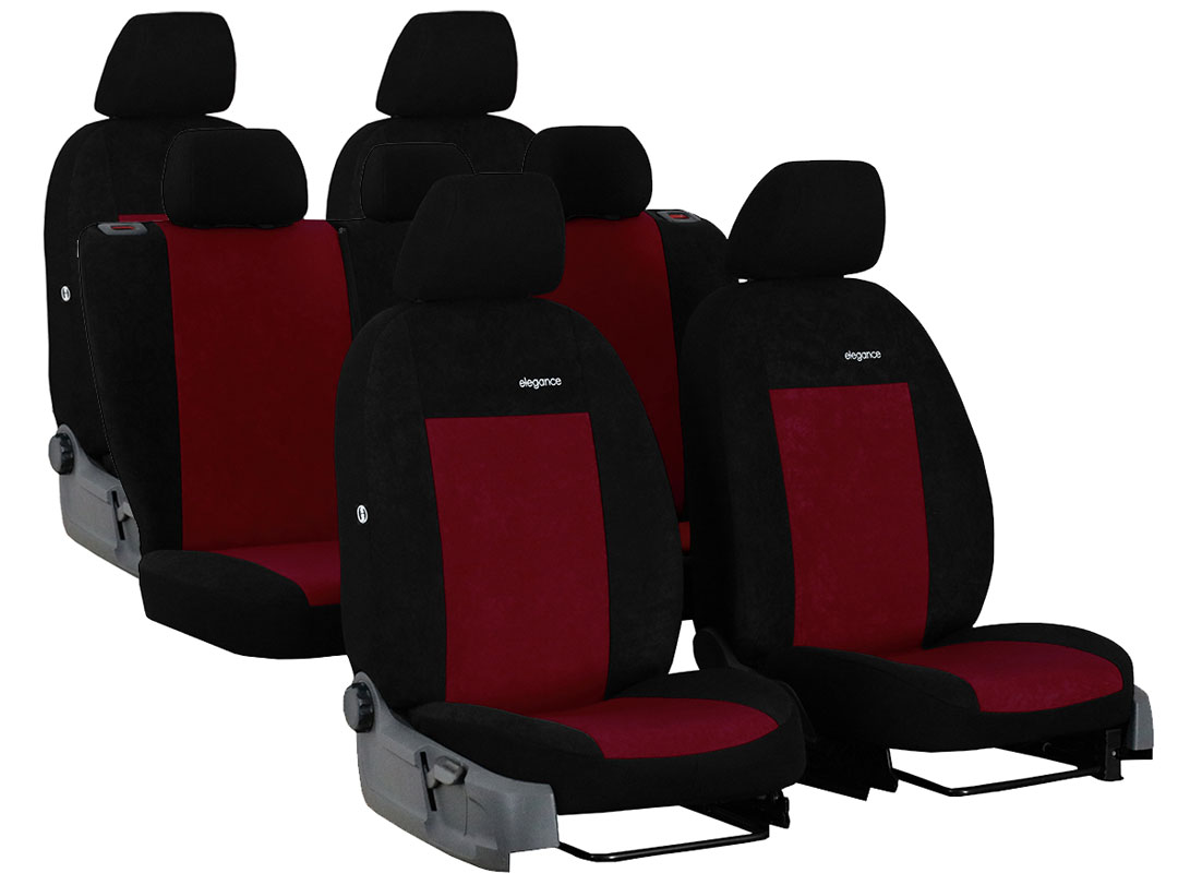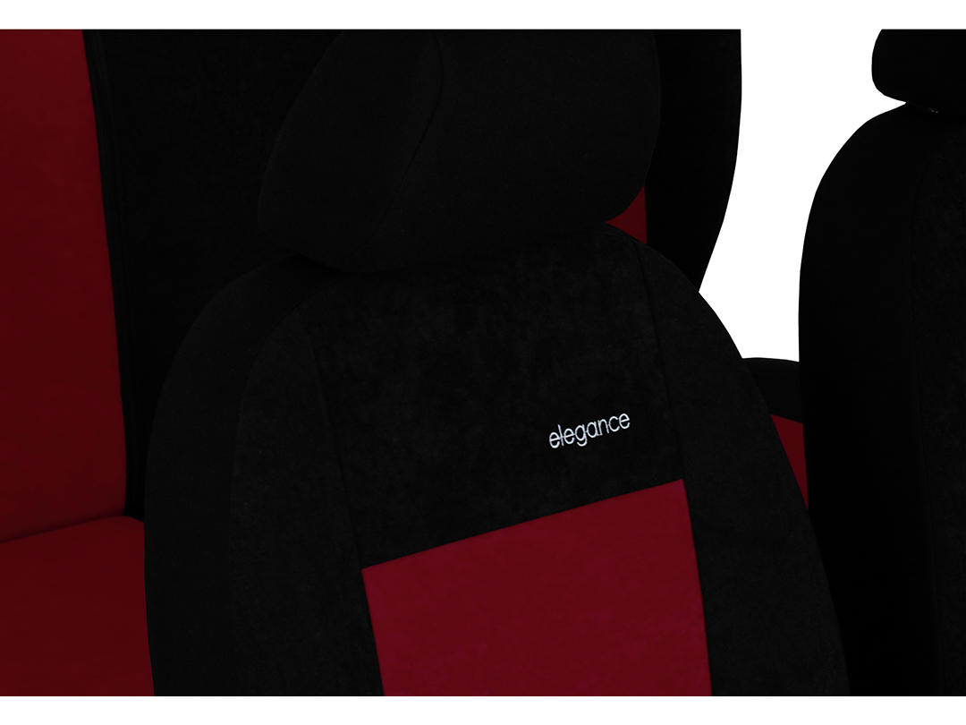 Az Elegance huzatok kiváló minőségű velúr anyagból készülnek, pontosabban öko-velúr a hivatalos neve. A huzatok szabását az egyszerűség jellemzi, de pont ebben rejlik az eleganciájuk is. A huzatok külső része fekete. Belső színes eleme pedig 8 szín közül választható. Csak a ülőfelület anyag velúr, az ülések hátulja kárpitszövetből van. A fejtámlák színe fekete, anyaga szövet.
